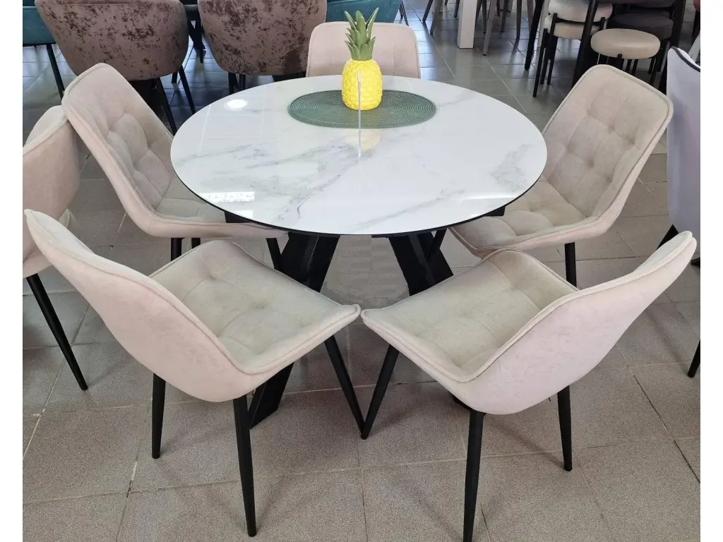SFC110 стекло Оптивайт Белый мрамор/опоры черные круглый стол раздвижной 5