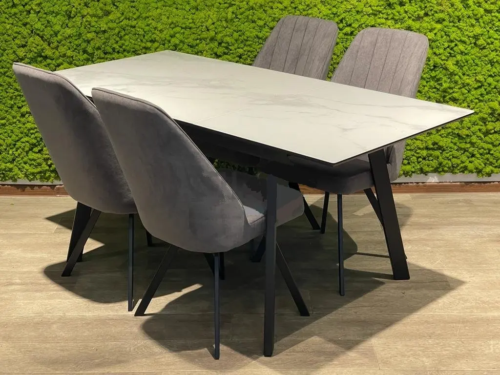 SFH125 стекло Белый мрамор/подстолье черное стол раздвижной 4