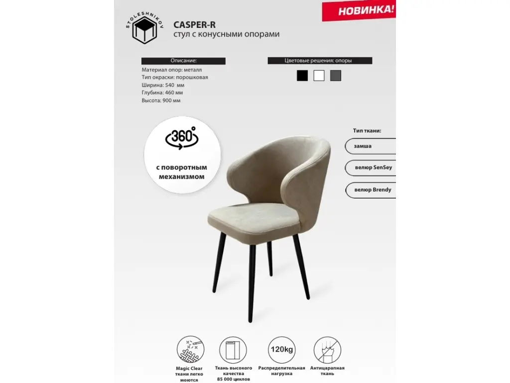 Стул CASPER-R с конусными опорами поворотный 2