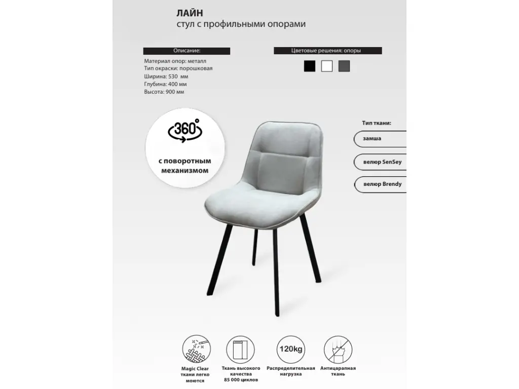 Стул ЛАЙН поворотный с профильными опорами 3